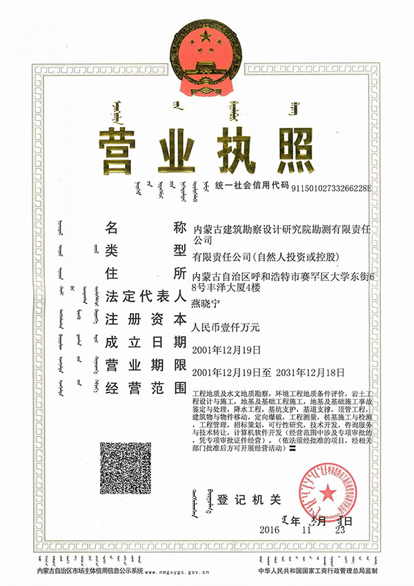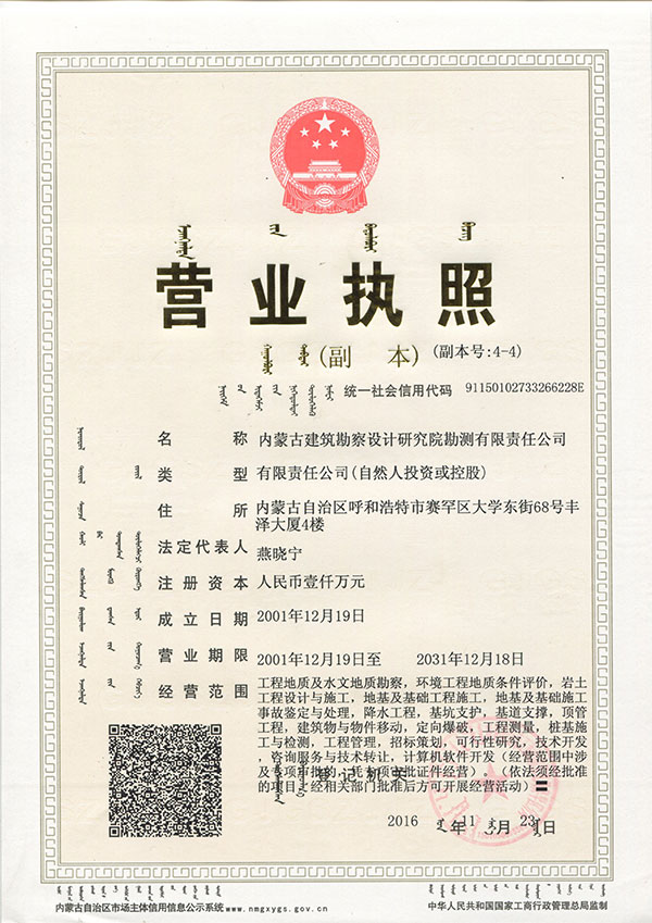 - 內蒙古建筑勘察設計研究院勘測有限責任公司,是全國首家完成 轉企建制的省級建筑勘察設計單位。公司前身為內蒙古建筑勘察 設計研究院勘測分院, 成立于1954年 ,經過六十多年的發(fā)展, 現(xiàn)已成為全區(qū)技術力量雄厚、專業(yè)設置齊全的集巖土工程勘察 、 設計、治理、檢測、監(jiān)理、咨詢、水文地質勘查、工程測量、科 研為一體的綜合性企業(yè) ... ... [查看詳情]